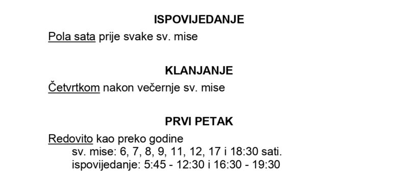 Ljetni raspored 2023. u okrilju Bazilike Srca Isusova
